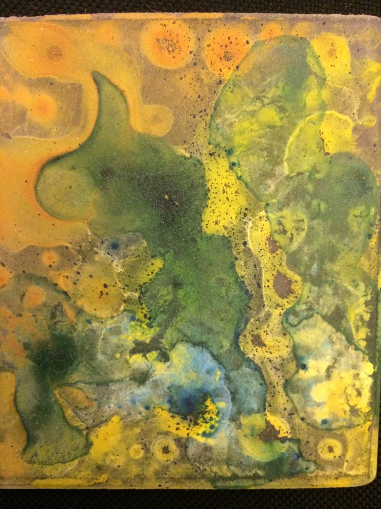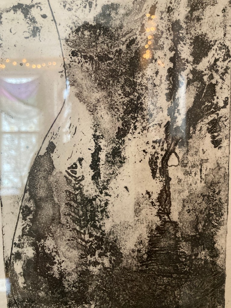 A watercolor print I made, sometime in my 20’s. It never actually made it onto the page… I was too attached to the way it looked on the plexiglass plate. Over the years it’s developed scratches, the scars of living. I think I made the right choice. Let’s call it, “Naming my ghosts.”